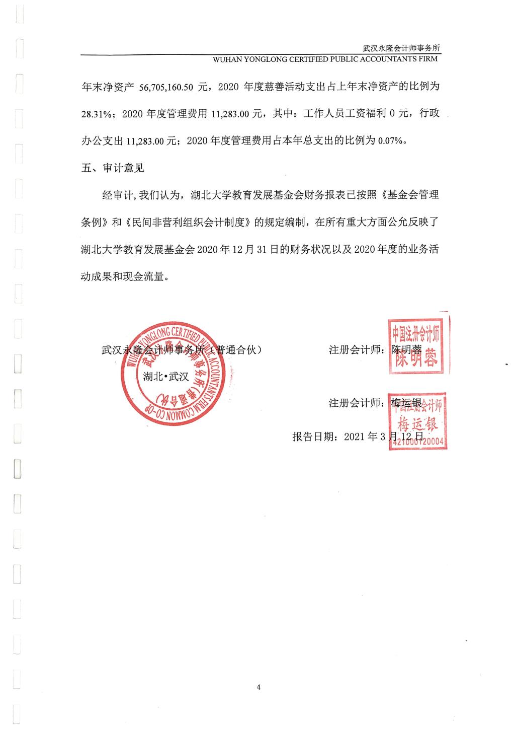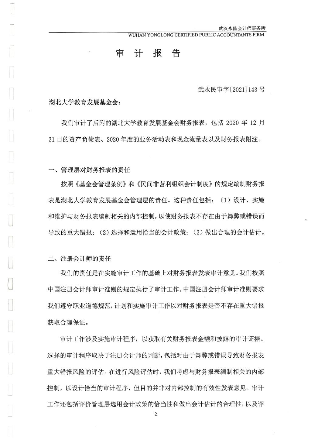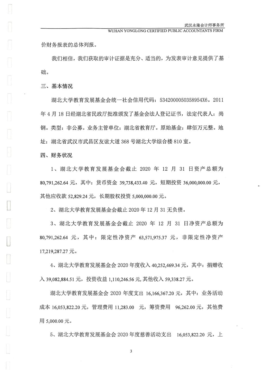 湖北大学教育发展基金会2020年财务审计报告公示